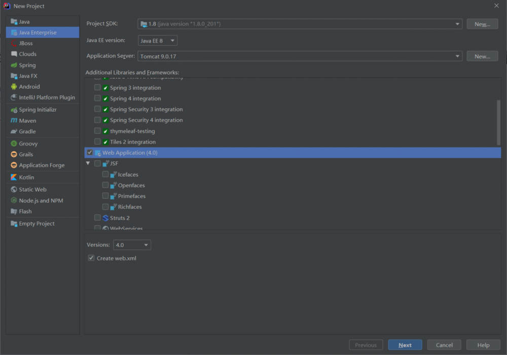 首先create project然后 选择Java Enterprise 这时候其他基本都默认,Application Server中是你安装的tomcat,一般会自动显示,不然就自己手动找到安装路径即可。这时候注意的是第一个细节,如果是选择Java选项在右边的选项中就看不到Application Server这个配置,那就需要进入到工程里边再手动配置tomcat。