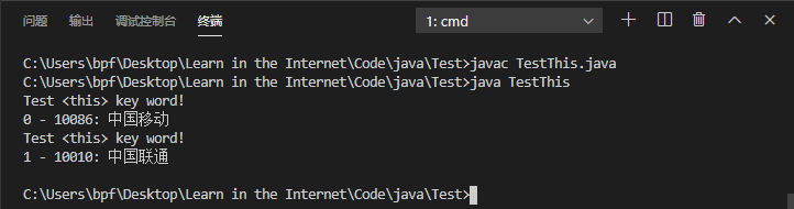 TestThis test1 = new TestThis(0, 10086, "中国移动");