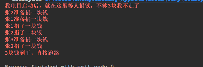 System.err.println("张1准备捐一块钱");
