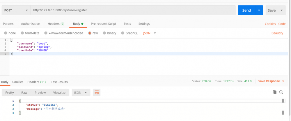 return new MyResponse("SUCCESS", "用户新增成功");
