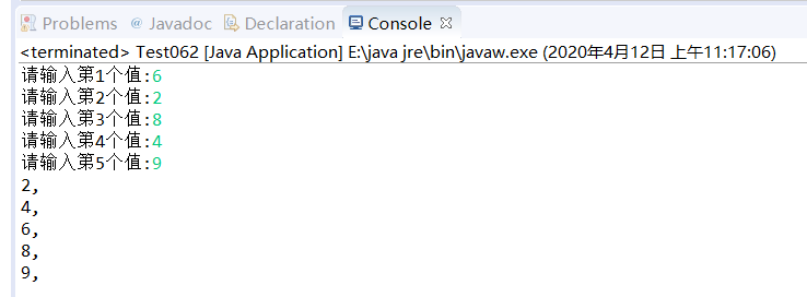 System.out.print("请输入第" + (i + 1) + "个值:");