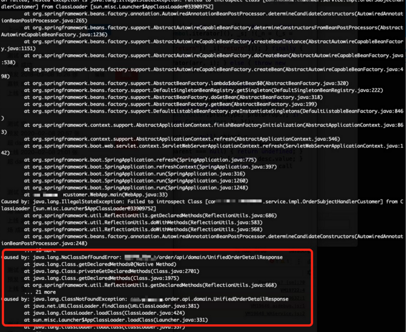 终于真相大白了,classpath中指向的是 order-api-2.0-20200225.024541-15.jar, 但lib中只有 order-api-2.0-SNAPSHOT.jar。 所以找不到class是没有错的。