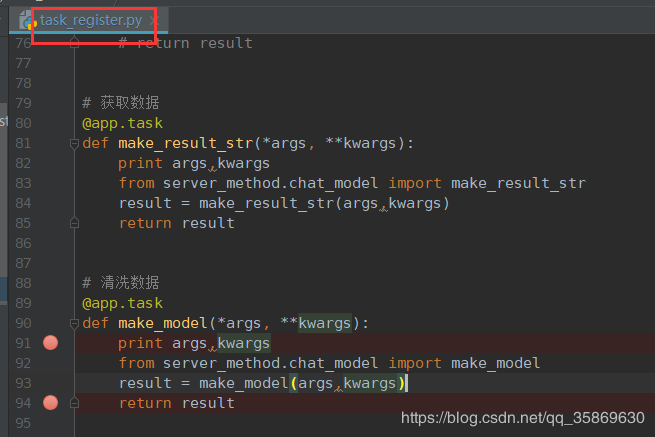 可以看到这里4个任务大概都执行了60s完成了任务。在执行完第一步make_result_str之后,就要执行第二部make_model了,可以看到make_model在执行完全部第一步之后才开始执行。 ok,Celery服务端到这里就已经把任务都完成了。