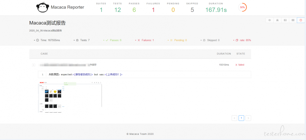 用例如果失败,macaca-reporter-java-plugin将通过当前工程的目录 ./screenshot 下去获取图片名,并通过DisplayName去比对,找到对应的图片转换为Base64图片码保存到报告中。