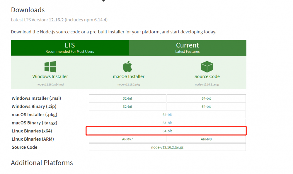 从官网下下载最新的nodejs, https://nodejs.org/en/download/
