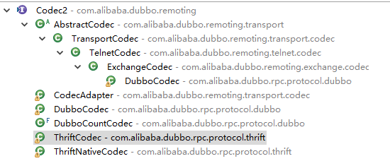 本文主要以 Dubbo 协议为例进行展开,其他通信方式,例如 Thrift 就不做过多分析,其实现思路基本是样的,Dubbo 协议的编解码实现类为 DubboCodec。