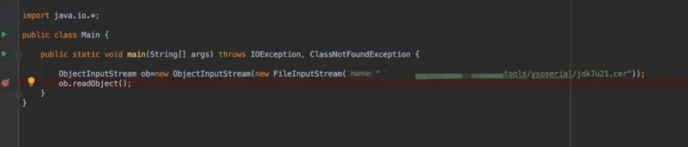 这里面的代码是直接使用ysoserial项目生成,直接输出到jdk7u21.cer文件中,然后进行反序列化。