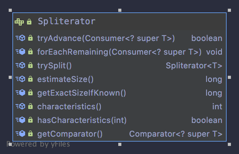 好了,我们知道了spliterator是做什么的之后,看一下它的具体结构: