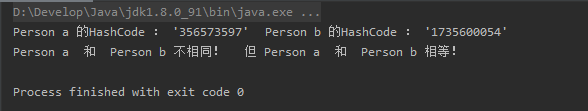 System.out.print("Person a 和 Person b " + (a.hashCode() == b.hashCode() ? "" : "不") + "相同!");