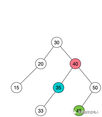 假设图中 40(红色) 的节点为 当前节点 ,那么 35(蓝色) 节点为 前驱节点 , 45(绿色) 节点为 后继节点 。