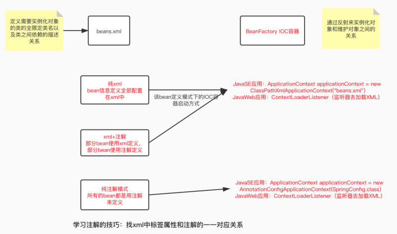 | 标签的scope属性 | @Scope("prototype"),默认单例,注解加在类上 |