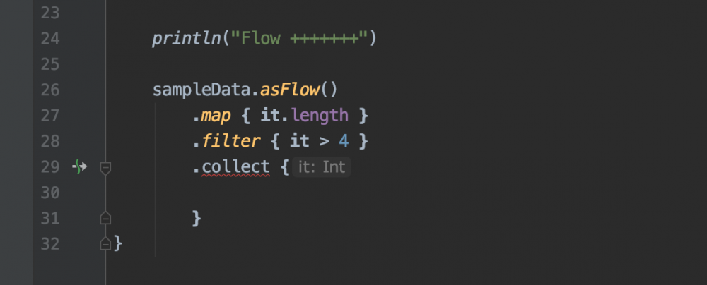 如果我们尝试获取列表并将其用作 flow ,并在流的末尾调用 collect {..} ,则会收到编译错误。 由于 flow 是基于协程构建的,因此默认情况下它具有异步功能,因此您可以在代码中使用协程时使用它