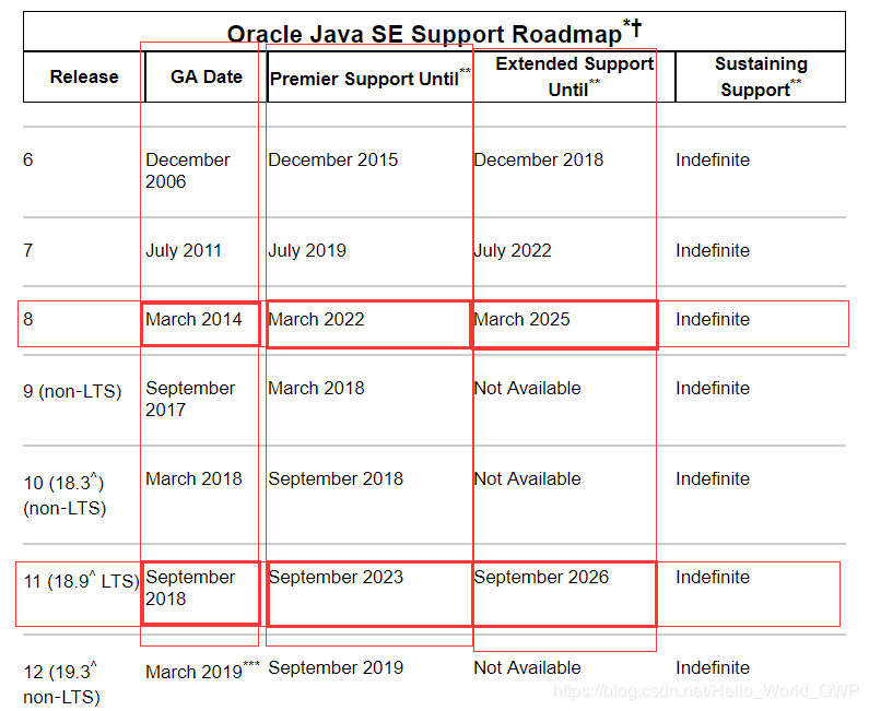 Java11 于 2018 年 9 月 25 日正式发布,这是很重要的一个版本!Java 11 和 2017 年 9 月份发布的 Java 9 以及 2018 年 3 月份发布的 Java 10 相比,其最大的区别就是:在长期支持(Long-Term-Support)方面, Oracle 表示会对 Java 11 提供大力支持,这一支持将会持续至 2026 年 9 月。这是据 Java 8 以后支持的首个长期版本。
