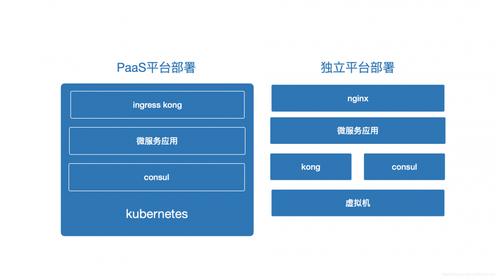 然后选择了kong和consul这两个即可以融合到kuberentes平台中又可以独立进行部署提供能力的技术组件,来实现微服务化的核心能力。这样我们实现了微服务本身对重量级PaaS平台的解耦,又通过轻量级的微服务管理平台来实现快速的构建微服务基础设施。