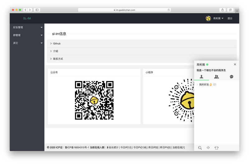 sl-im 是基于 Swoft 微服务协程框架和 Layim 网页聊天系统 所开发出来的聊天室。