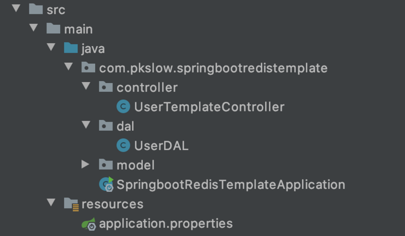 本文将通过实例讲解 SpringbootTemplate 方式整合 Redis ,并遇到一些序列化的问题。代码结构如下: