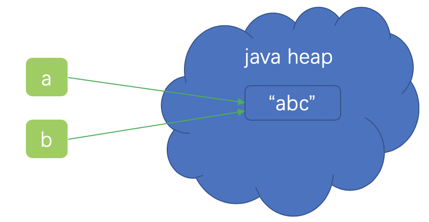 有了“abc”,然后我们将“abc” 赋值给a和b。
