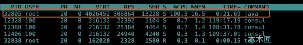 通过执行 top -Hp 32805 查看Java线程情况