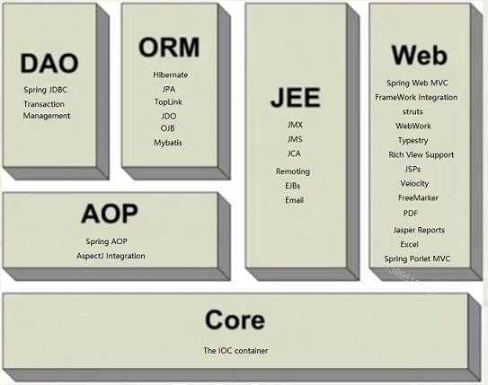 Spring容器:在Spring中,任何的Java类都被当成Bean组件,通过容器管理和使用,Spring容器实现了IOC和AOP机制,