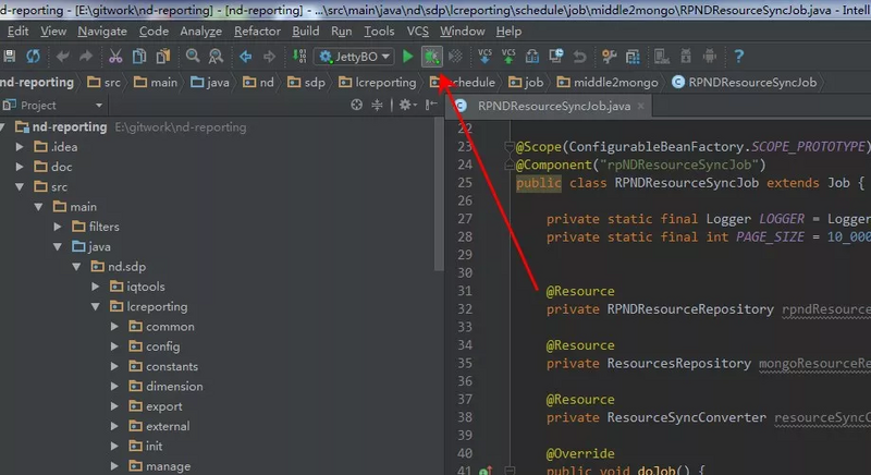 1、这里以一个web工程为例,点击图中按钮开始运行web工程。