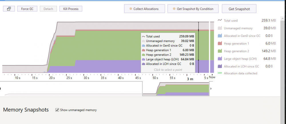 凭空想象这些概念多少会索然无味,下图是我我基于本地的一个程序生成的内存快照,使用jetbrains推出的 dotMemory 工具生成。