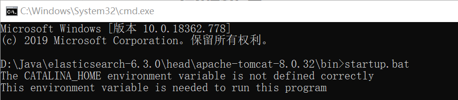 双击startup.bat脚本无任何反应,所以在cmd窗口去运行,结果发现如下错误信息: