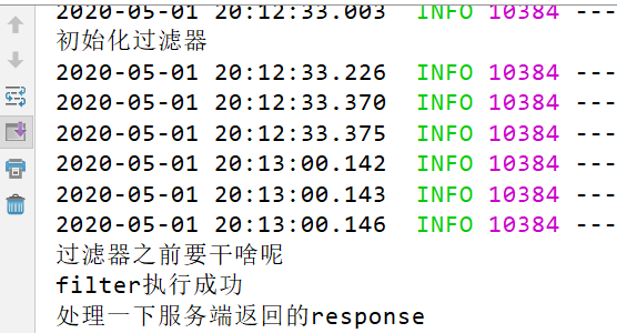 完成之后启动项目,访问接口:localhost:8098/Filter/testFilter,观察控制台运行结果。