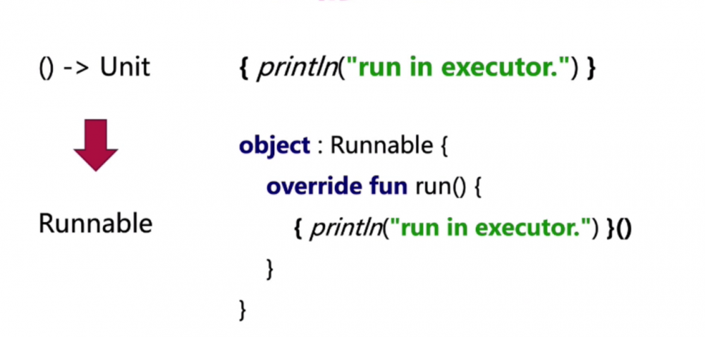 上文中的例子 这个kotlin的lambda的类型就是 ()->Unit 是一个没有参数也没有返回值的类型