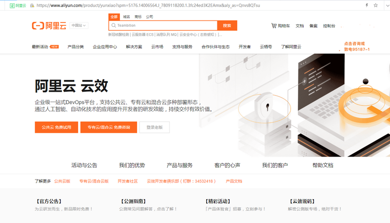 阿里云发布了最新[云效2020]产品。云效提供从“需求 ->开发->测试->发布->运维->运营”端到端的协同服务和研发工具,支持公共云、专有云和混合云多种部署形态,通过人工智能、自动化 技术的应用助力开发者提升研发效能,持续快速交付有效价值。