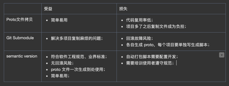 历史原因我司的后端团队在同时使用 3 种语言:Python、Go、Java。为了实现团队的水平拆分和业务逻辑的收敛,我们会在不同的业务线间使用 unary 模式的 gRPC 来进行同步通信。 例如报名业务中会存在一个查询某个用户所有报名记录的接口,这个接口是 Python 语言开发的,在不同的业务场景上 Go、Java 都会调用这个接口。这就导致该接口的 protobuf 文件由 Python 开发者维护,同时 Go 和 Java 的 client 需要同步变更以使用最新版本的接口。一旦接口需要升级,协调 server 端有发布和升级,proto 文件仓库的变更,client 端变更发布就变成了一个很麻烦的事情。我们需要一个方便透明的规范来协调各端。