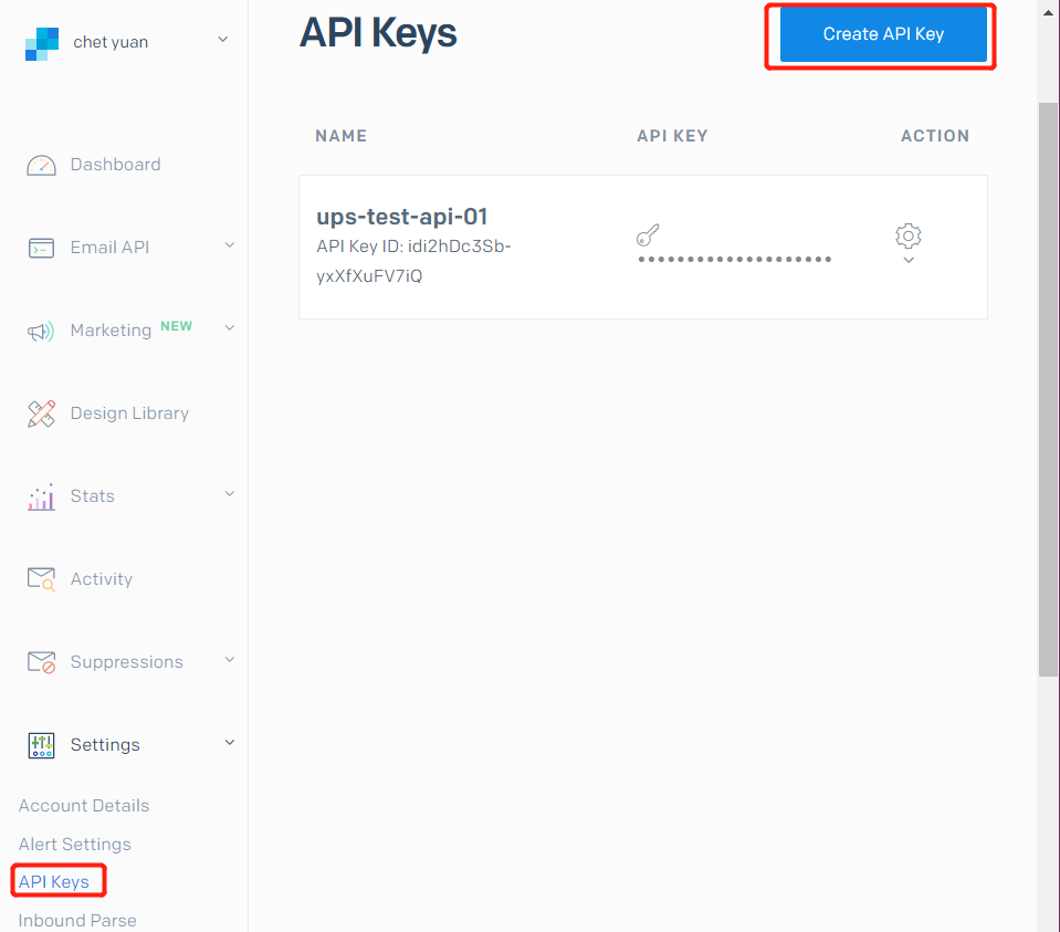 在左导航栏选择Settings->API Keys,选择Create API Key,可根据需要选择权限,我选的是Full Access,点击生成后记得保存,这个key内容以后是查看不了的