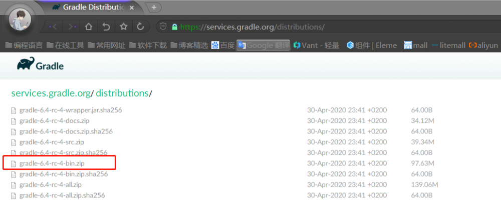 访问Gradle官网 https://services.gradle.org/distributions/ ,选择gradle-6.4-rc-4-bin.zip(截止2020-05-03当前最新),下载到本地并解压