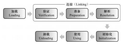 类的加载机制分为如下三个阶段:加载,连接,初始化。其中连接又分为三个小阶段:验证,准备,解析。