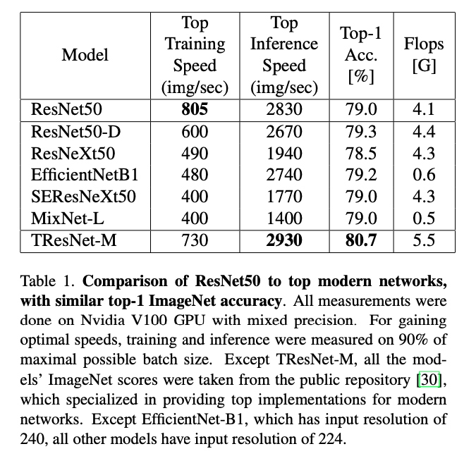 TResNet把前人的工作做了一个杂烩。又想快又想acc高怎么办?增大吞吐。然而对于GPU这种已经定型的硬件,其实就是增大batch size。。。简单总结下: