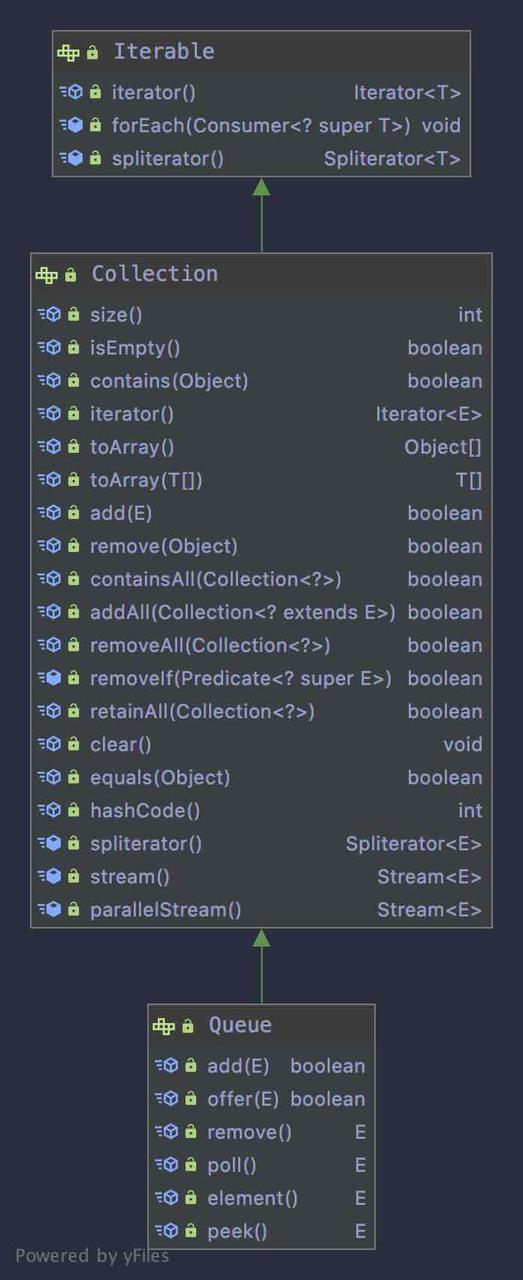 Queue继承自Collection,Collection继承自Iterable。