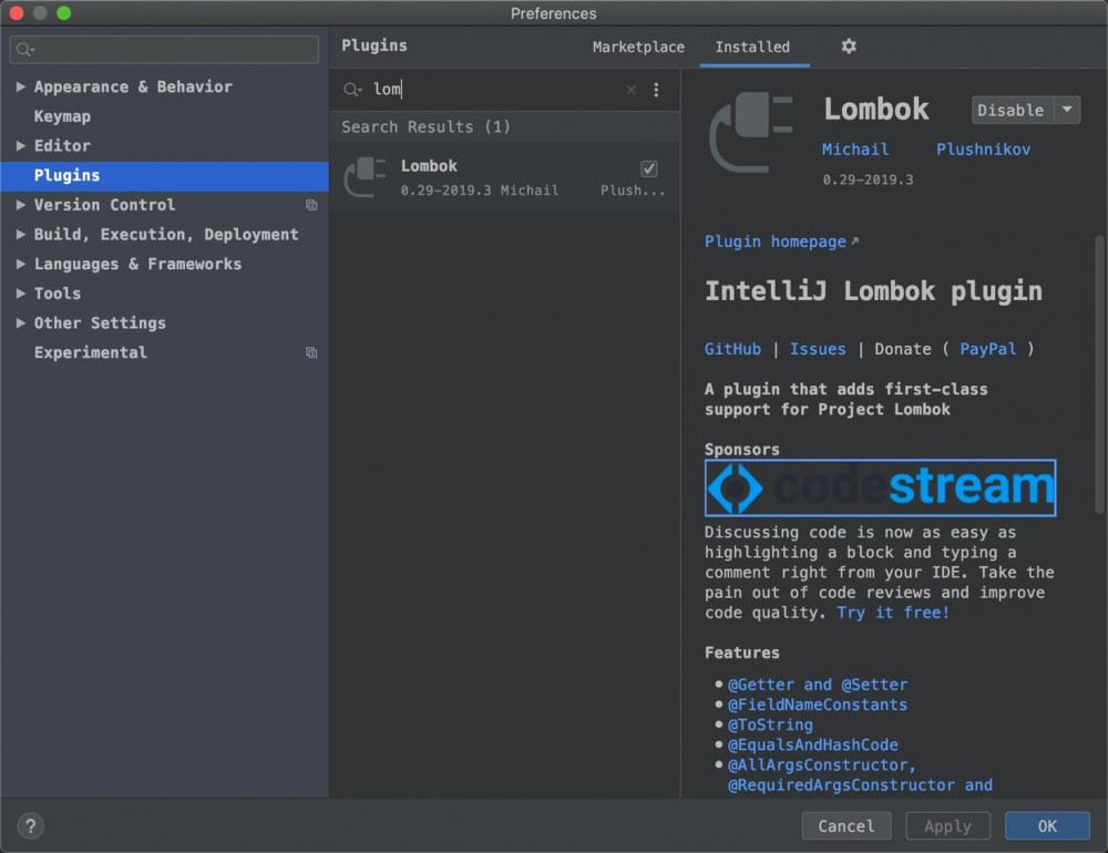 Lombok是一款好用顺手的工具,就像Google Guava一样,在此予以强烈推荐,每一个Java工程师都应该使用它。 Lombok是一种Java™实用工具,可用来帮助开发人员消除Java的冗长代码,尤其是对于简单的Java对象(POJO)。它通过注释实现这一目的 。通过在开发环境中实现Lombok,开发人员可以节省构建诸如hashCode()和equals()这样的方法以及以往用来分类各种accessor和mutator的大量时间。