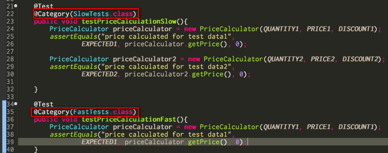 Suppose you have a large number of unit test cases and you don’t want them to be executed all at the same time during Maven build. You can simply achieve it via annotation @Category.