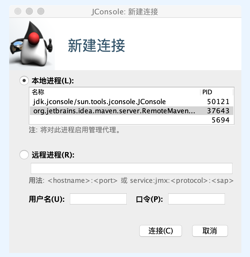 JConsole有两种连接方式,一种是连接本地的进程,一种是连接远程的程序。