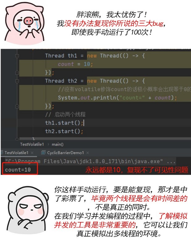 上一节 【漫画】JAVA并发编程三大Bug源头(可见性、原子性、有序性) 我们聊了聊并发编程的三个bug源头,这还没开始进入并发世界,胖滚猪就遇到了难题。。