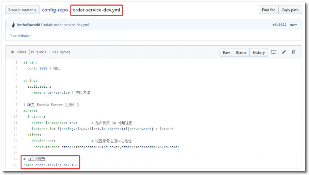 name: order-service # 配置文件名称,对应 git 仓库中配置文件前半部分