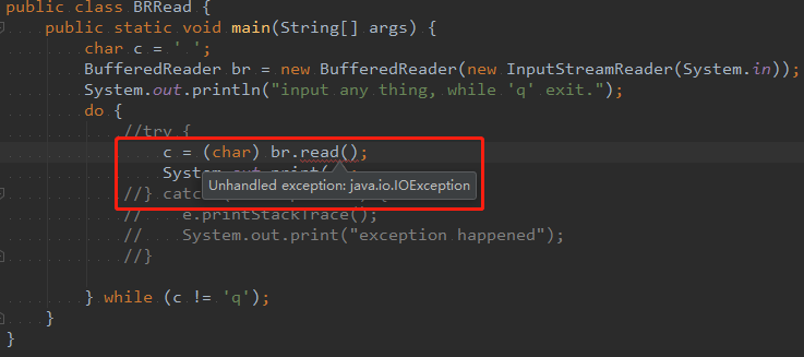 另一方面就是让开发者去解决掉这类异常,所以称为必须处理(try ...catch)的异常。如果不处理这类异常,集成开发环境中的编译器一般会给出错误提示。