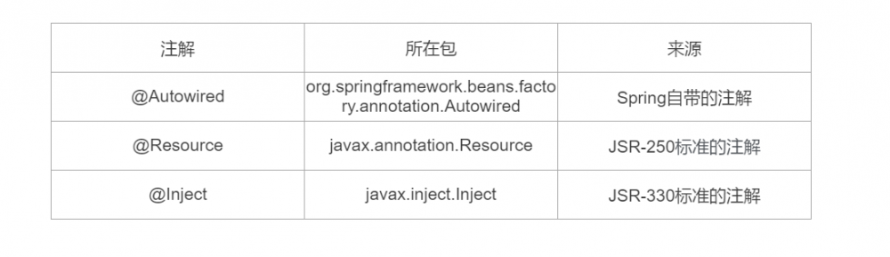 Spring中我们可以使用以下三个自动装配的注解进行依赖注入: