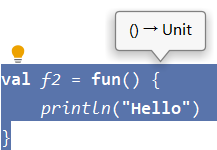 以上赋值号右边是一个没有函数名的 匿名函数 ,可以赋值给变量 f2 ,执行 f2() 或者 f2.invoke() 来调用该匿名函数。