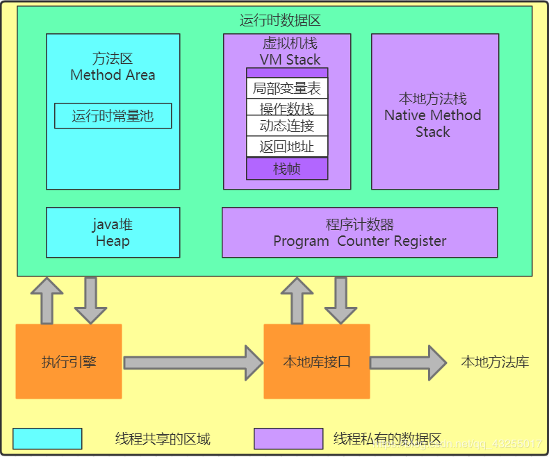 这五个部分都有自己的功能,有些区域是线程私有的,会跟随着线程的创建和销毁,有些区域是跟随进程的启动而存在,各自承担着自己的职责。