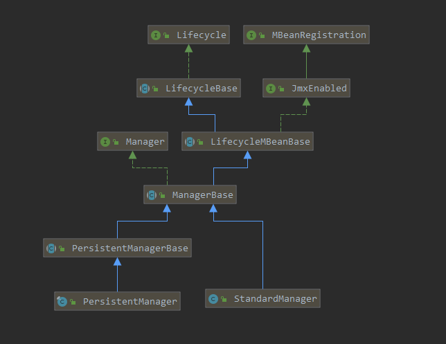 可以看到, PersistentManager 的实现还是有点复杂的,主要在安全性和性能之间的平衡,它的 StandardManager 是一种基本是一种包含关系,即除了要维护内存session外,还要维护外部存储的状态。