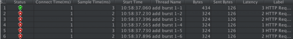 我们使用单 IP 在 10ms 内发并发送了 6 个请求的执行结果如下: