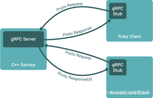 在服务端,我们实现了所定义的服务和可供远程调用的方法,运行一个gRPC server来处理客户端的请求;在客户端,gRPC实现了一个stub(可以简单理解为一个client),其提供跟服务端相同的方法。
