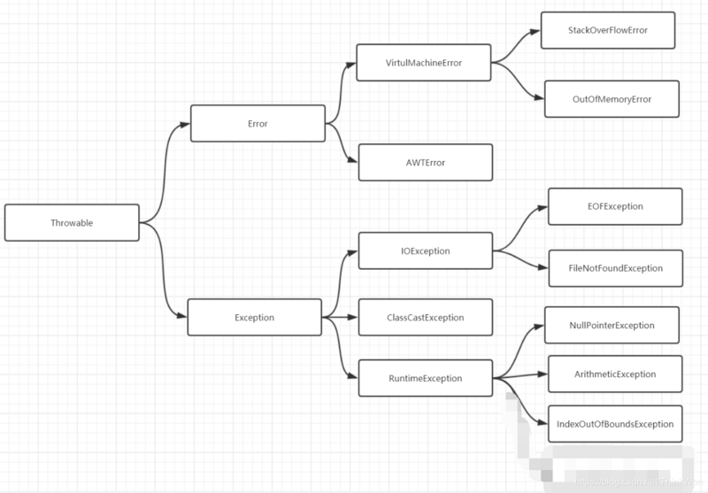 这些错误是不受检异常,非代码性错误。因此,当此类错误发生时,应用程序不应该去处理此类错误。按照Java惯例,我们是不应该实现任何新的Error子类的!