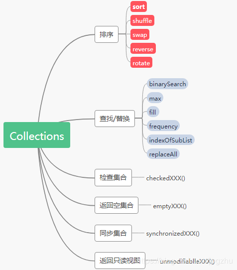 Collections的方法都为静态方法,主要分为以下几类:该文主要对 排序 、 查找/替换 等方法进行解析。