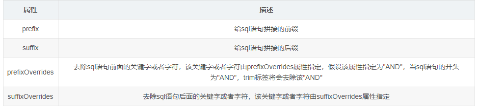MyBatis的trim标签一般用于去除sql语句中多余的and关键字,逗号,或者给sql语句前拼接 “where“、“set“以及“values(“ 等前缀,或者添加“)“等后缀,可用于选择性插入、更新、删除或者条件查询等操作。